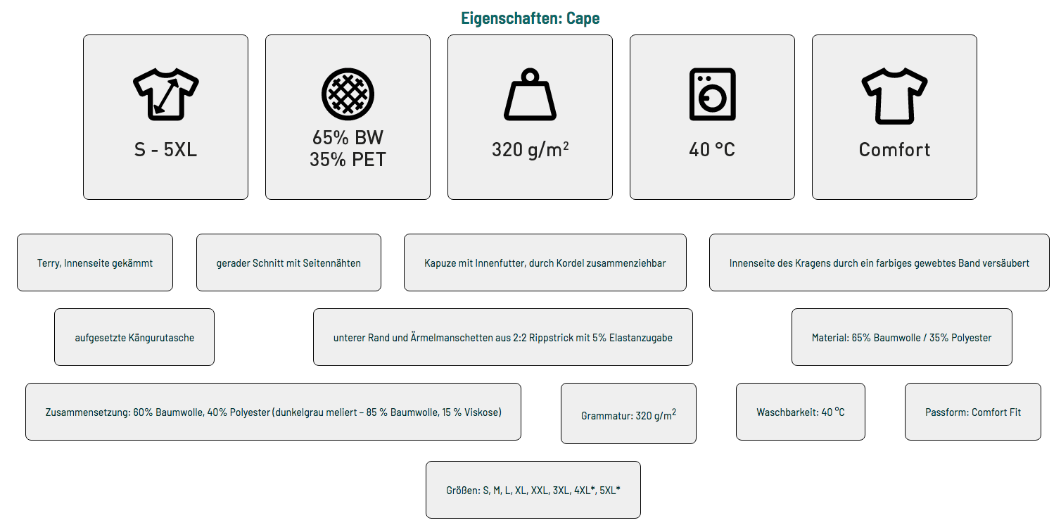 - Material: 65 % Baumwolle, 35 % Polyester (Terry, innen gekämmt)