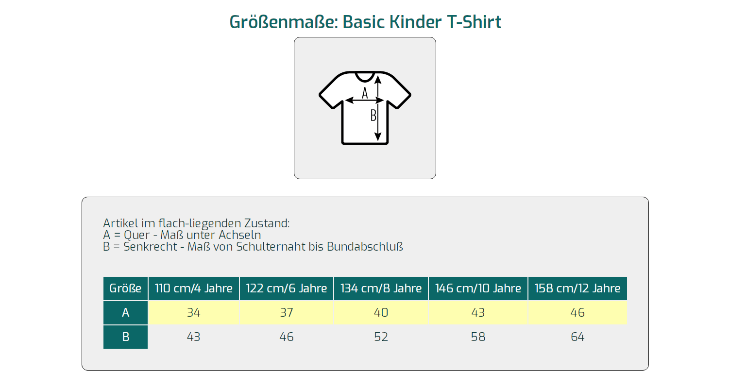 Mit einer Grammatur von 160 g/m² ist das Shirt robust und dennoch leicht, wodurch es besonders angenehm zu tragen ist. Die Größen reichen von 110 cm (ca. 4 Jahre) bis 158 cm (ca. 12 Jahre) und decken damit ein breites Altersspektrum ab. Der klassische Schnitt mit Seitennähten sorgt für eine gute Passform und Bewegungsfreiheit, während der schmal geformte Kragensaum aus 1:1 Rippstrick mit 5 % Elastan dauerhaft seine Form behält. Die Innenseite des Kragens ist durch ein Band aus T-Shirt-Material versäubert, und verstärkte Schulternähte erhöhen die Stabilität bei häufigem Tragen und Waschen bis 40 °C.