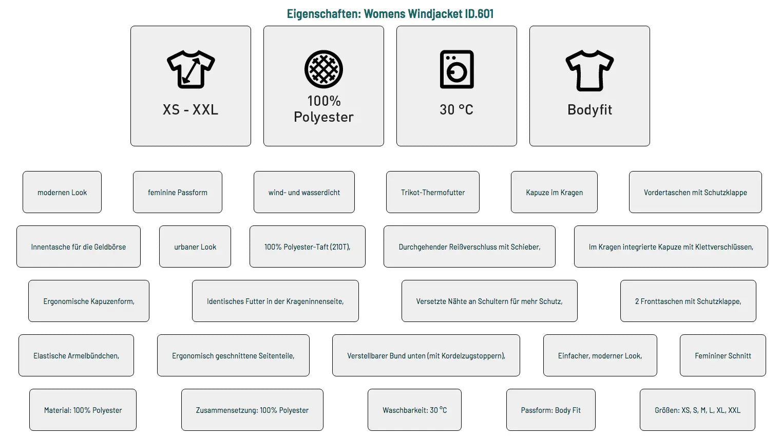 Bleibe sportlich auch an Schlechtwettertagen mit Deiner kuz Regen- und Windjacke für Damen aus 100% Polyester-Taft (210T). Der durchgehende Reißverschluss, integrierte Kapuze mit Klettverschlüssen und versetzte Nähte an den Schultern bieten Schutz bei Wind und Regen. Zusätzlich sorgen der Verstellbare Bund und elastische Ärmelbündchen für eine perfekte Passform. Im Ganzen bietet Dir diese Jacke einen einfachen, modernen Look mit femininen Schnitt. Sie lässt Dic auf dem eg von uns zum Training nicht im Regen stehen und ist perfekt für die Aktivitäten im Freien.