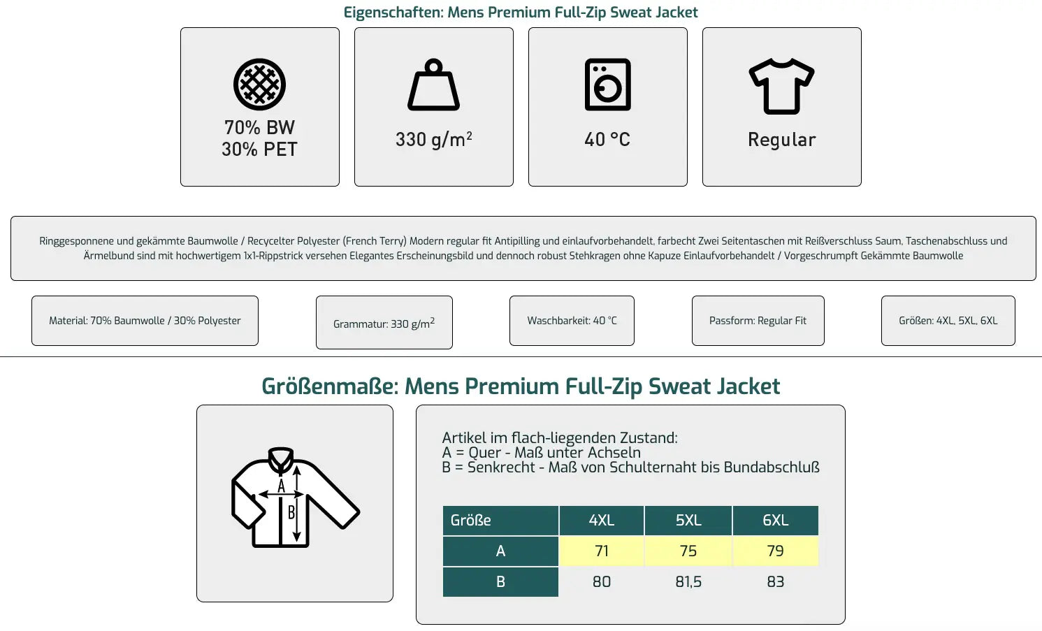 Die Sweatjacke entsteht in einer Manufaktur, in der alle Drucke, Veredelungen und Logos aus einer Hand kommen – von der Motivgestaltung bis zum finalen Druck. So bleibt die Kontrolle über Qualität, Farbtreue und Platzierung des Designs vollständig im eigenen Haus, was einen gleichbleibend hohen Standard ermöglicht.